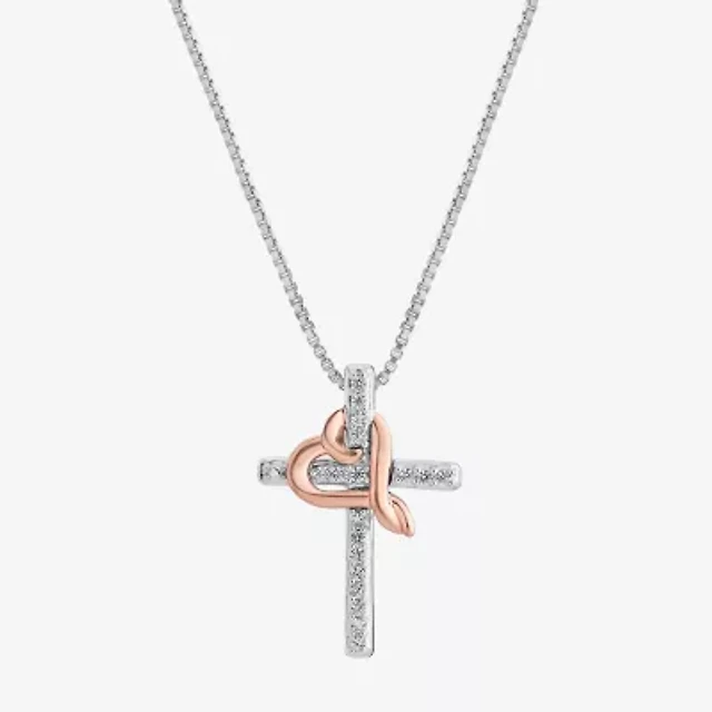 Mens Diamond Accent Two-Tone Stainless Steel Cross Pendant Necklace