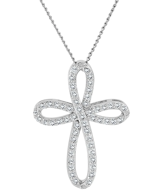 Hallmark Diamonds 1/4 CT.T.W. Natural Diamond 14K Rose Gold over SIlver & Sterling SIlver Cross Pendant Necklace