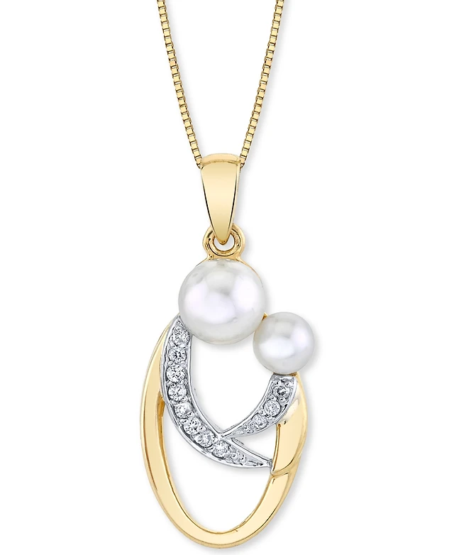 Certified Sofia™ Cultured Freshwater Pearl & Diamond-Accent 10K Gold Pendant Necklace