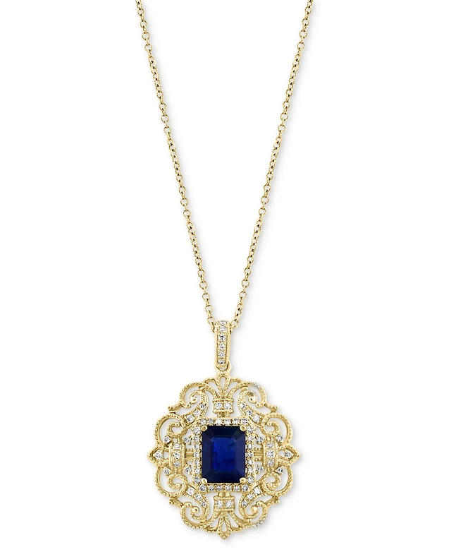 Effy Citrine (11-1/3 ct. t.w.) & Diamond (1/3 ct. t.w.) Emerald-Cut Halo 18" Pendant Necklace in 14k Gold (Also in Additional Gemstones