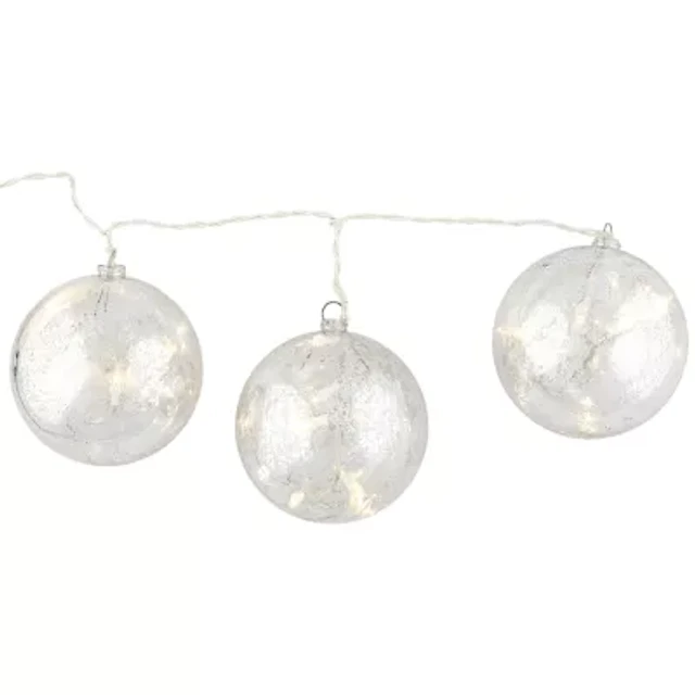 Set of 3 Lighted Silver Mercury Glass Finish Ball Christmas Ornaments - Clear Lights