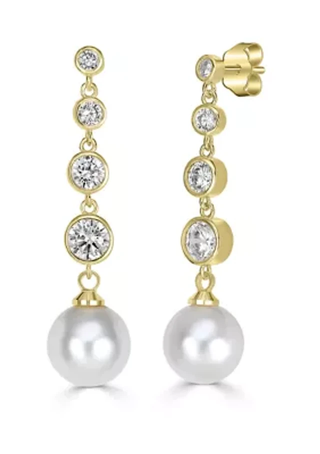 Gold Plated Graduated Cubic Zirconia Pearl Dangle Linear Earrings