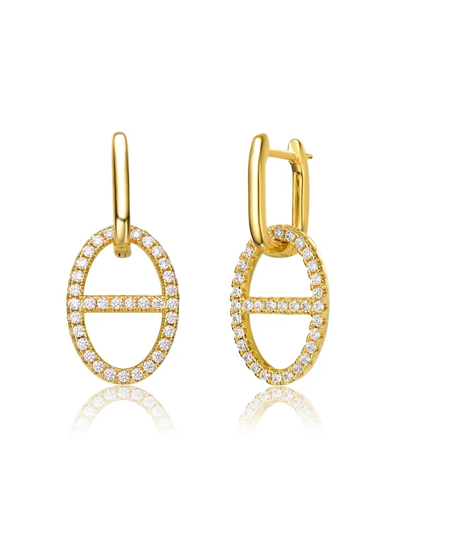 Cubic Zirconia Cross Dangle Huggie Hoop Earrings in Solid Sterling Silver with 14K Gold Plate