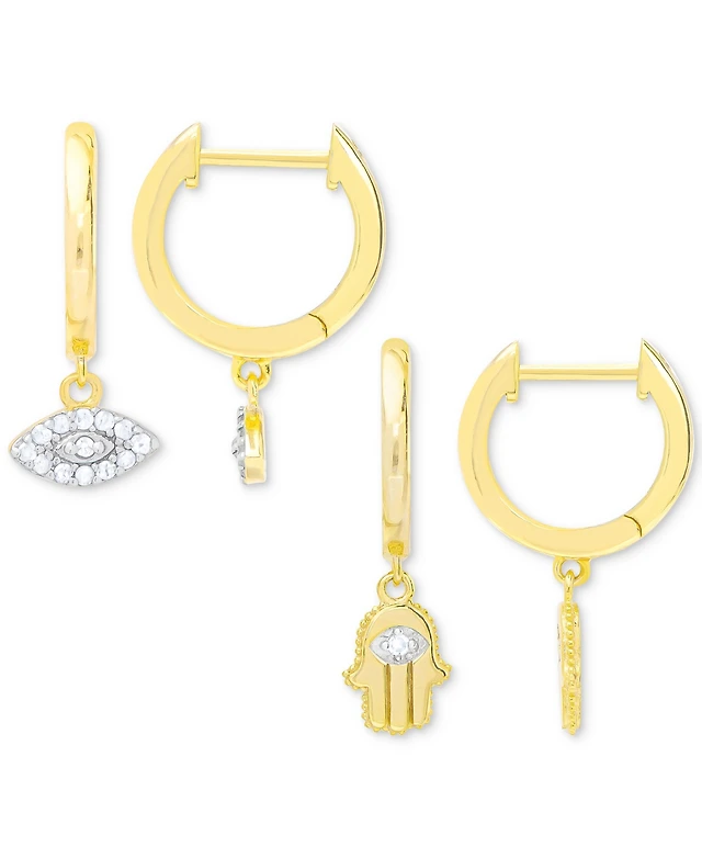 10K Gold 1/20 CT. T.W. Diamond Cross Dangle Hoops