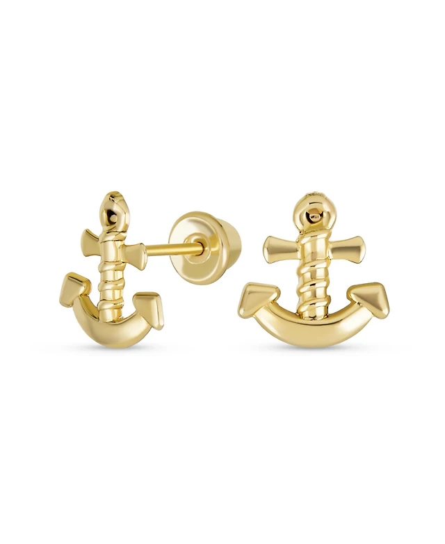Bling Jewelry Petite Small Tropical Beach Vacation Honeymoon Simple Nautical Boat Anchor Screw Back Stud Earrings Yellow 14K Gold