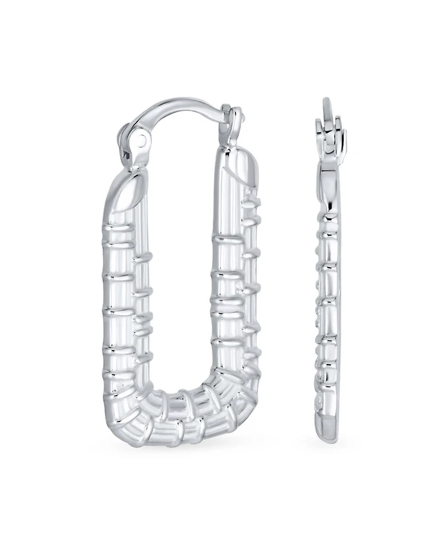 Bling Jewelry Boho Lightweight Large Rectangle Texture Bamboo Hoop Earrings Matte Sterling Silver 1 Inch Diameter