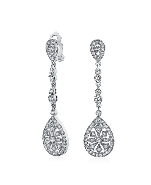 Bling Jewelry Art Deco Style Filigree Teardrop Cubic Zirconia Chandelier Clip On Earrings