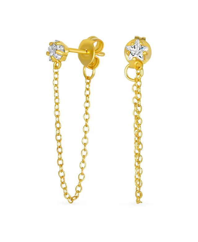 14K Hollow Gold and Titanium CZ Baguette and Spike Dangle Stud – 18G 5/16"