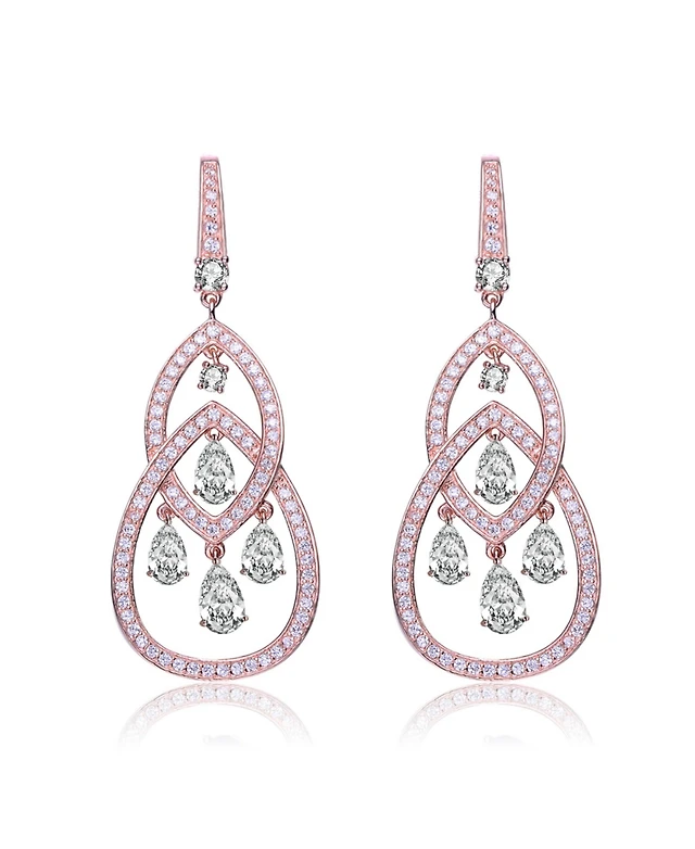 Cubic Zirconia Sterling Silver Double Teardrop Chandelier Earrings