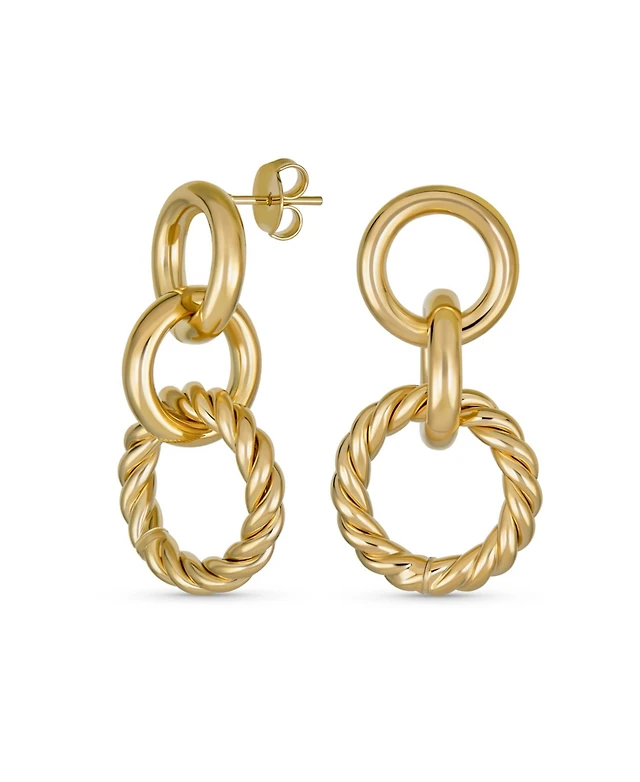 Bling Jewelry Classic Twisted Rope Braid Cable Light Weight Door Knocker Style 3 Tier Circle Hoop Earrings Yellow Gold Plated Brass 1.70 Inch