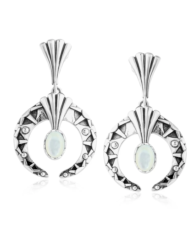 American West Jewelry Sterling Silver Mother of Pearl Fritz Casuse Oval Gemstone Naja Earrings