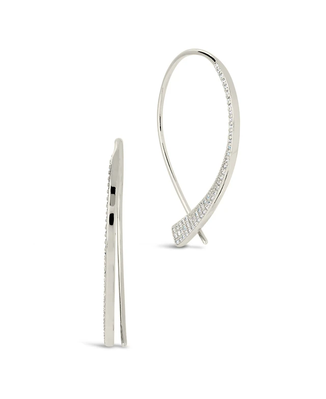 Sterling Silver Cubic Zirconia Pave C-Shaped Hoop Earrings
