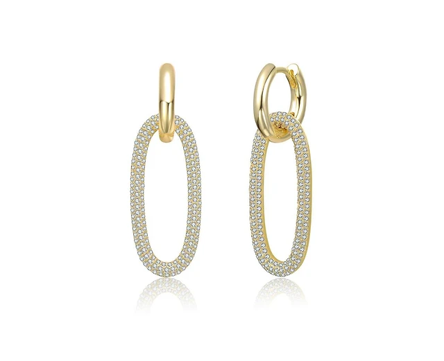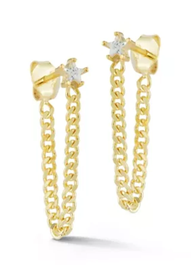 Gold Plated Cubic Zirconia Huggie Chain & Stud Earrings 2-Pack