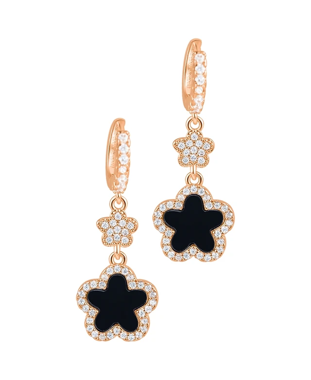Gold Plated Cubic Zirconia Flower Huggie Earrings 4-Pack