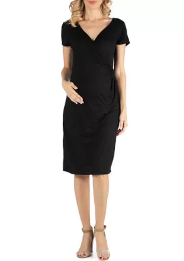 Faux Wrapover Maternity Dress with Cap Sleeves