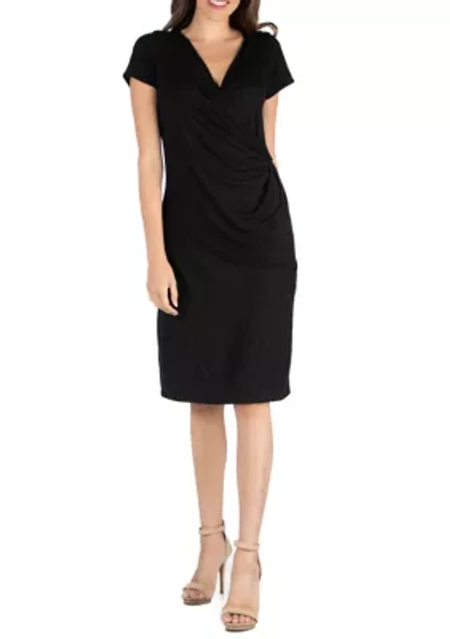 Womens Short Sleeve Knee Length Faux Wrap Dress