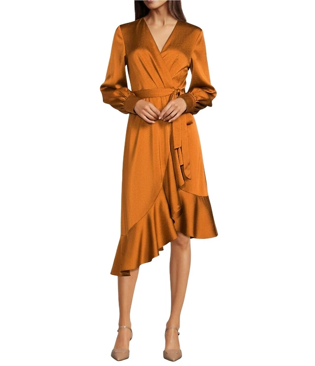 Alex Marie Lilac Hammered Satin V-Neck Long Sleeve Dress