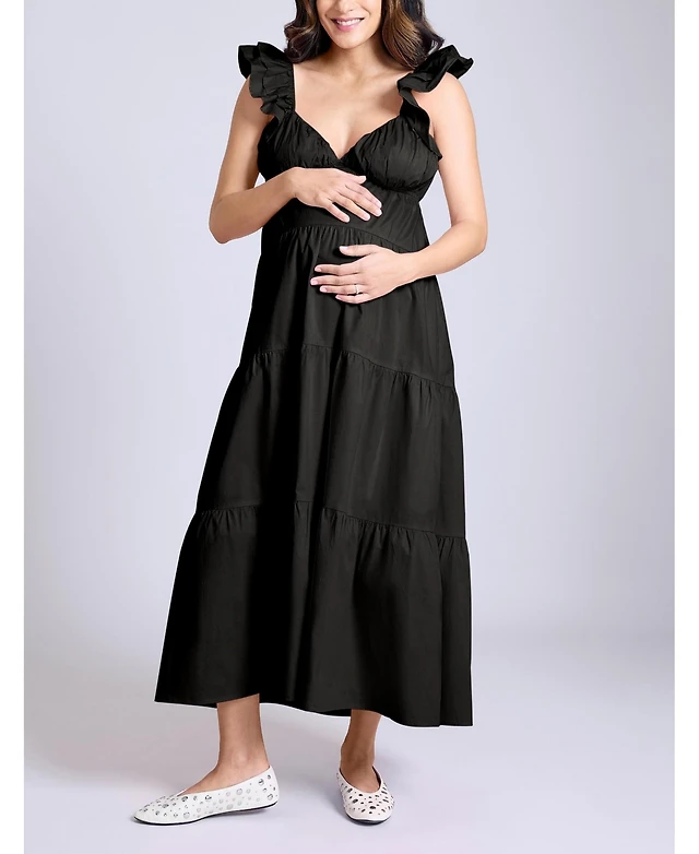 Motherhood Maternity Ruffle Sleeve Tie-Back Maxi Dress
