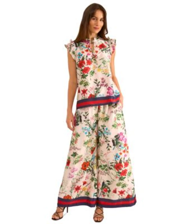 MELLODAY Floral Tencel Organza Coordinating Tie Front Wide Leg Pants