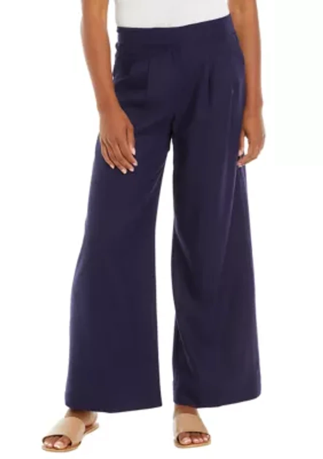 Evolutionary Linen Tencel Blend Mid Rise Button Front Flat Front Wide Leg Pants