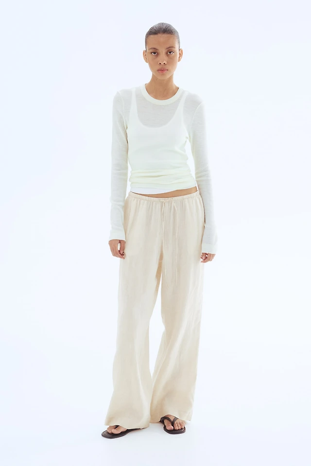Ann Taylor The Statement Palazzo Pant Linen Blend White Women's