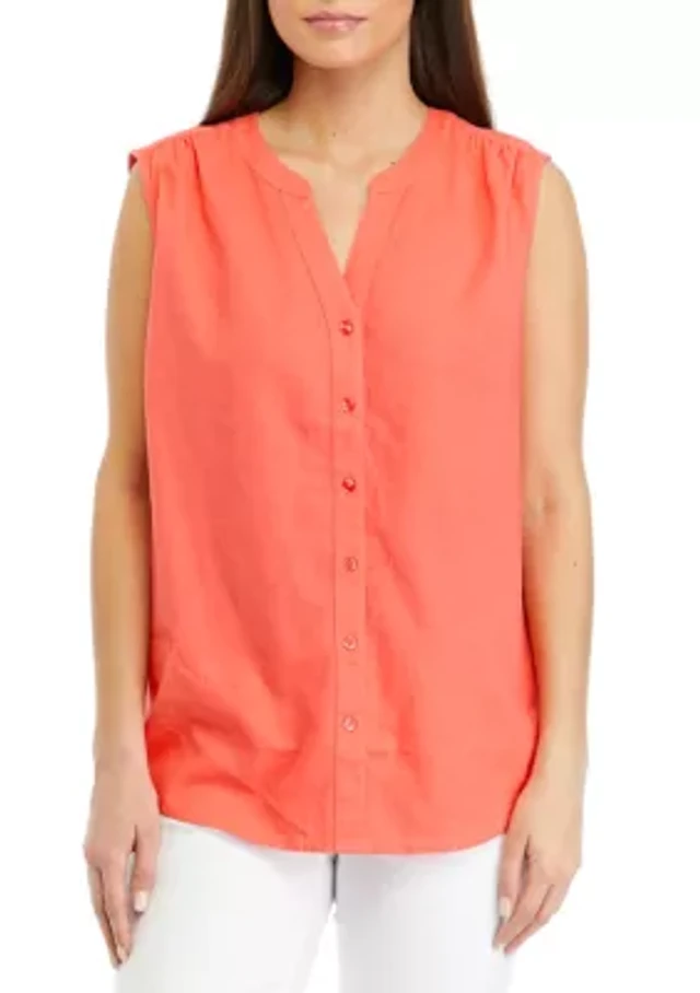 Linen-Blend Square Neck Tank