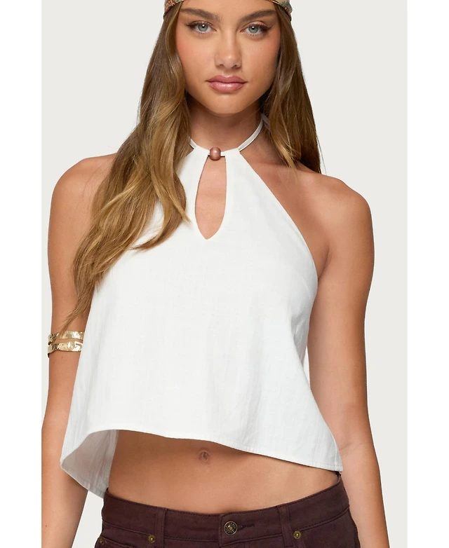 Charter Club Women's 100% Linen Split-Neck Tie-Cuff Top, Created for Macy's