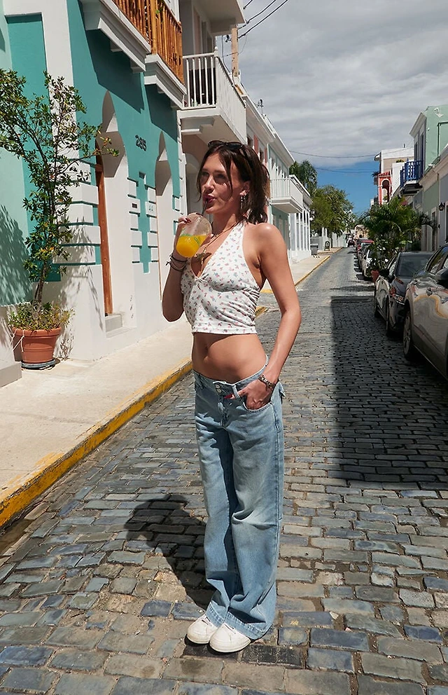 Edikted Jael Tie Front Eyelet Halter Top