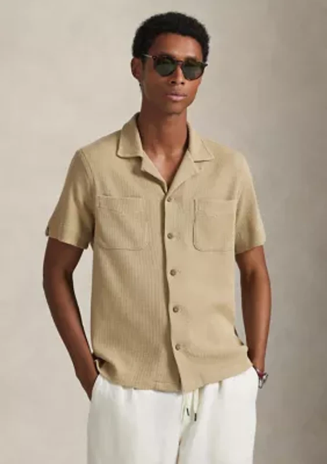 Waffle-Knit Cotton-Linen Camp Shirt