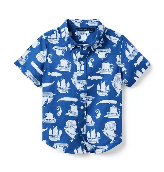Floral Border Boxy Linen Camp Shirt