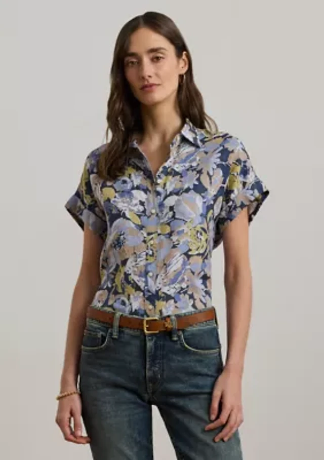 Lauren Ralph Plus Karrie Relaxed Fit Floral Point Collar Shirt