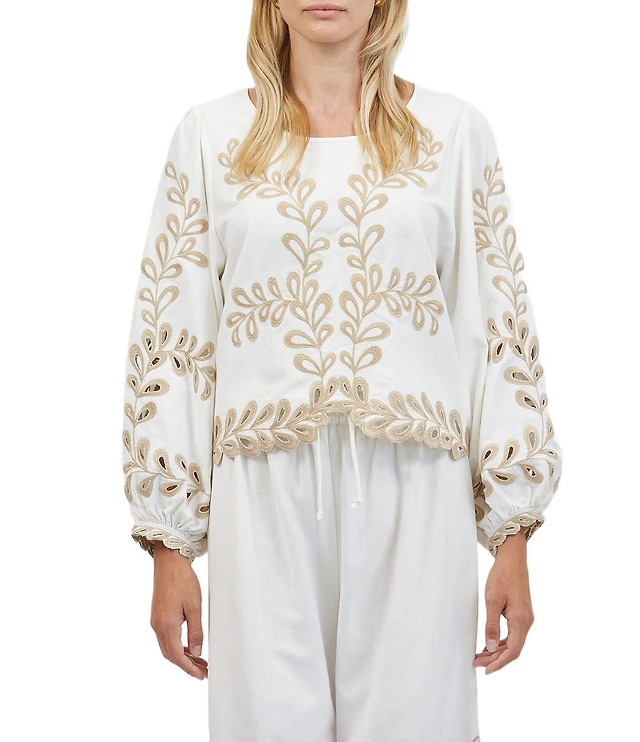 John Mark Point Collar 3/4 Sleeve Button Front Tie Top
