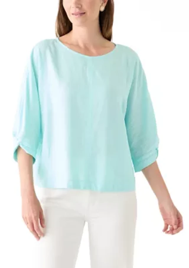 Tommy Bahama Orchid Isle Ruffle Neckline Button Front Placket Long Sleeve Top