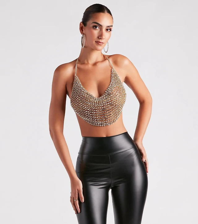 Chain Mail Fringe Rhinestone Crop Top