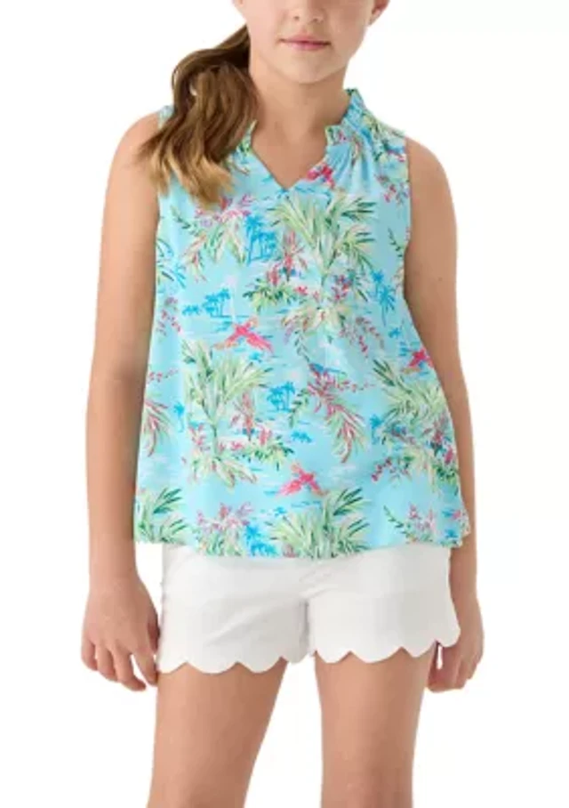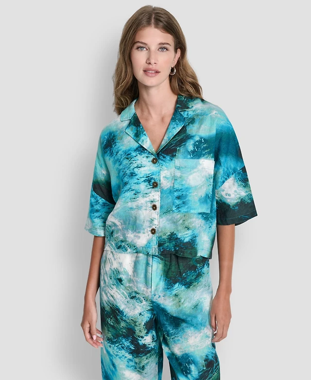 Dkny Women's Printed Drawstring Hem Sleeveless Top