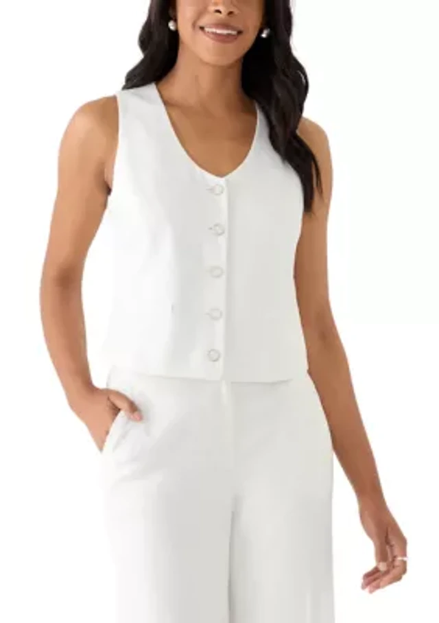 Alex Marie Brook V-Neck Stretch Linen Blend Button Front Vest