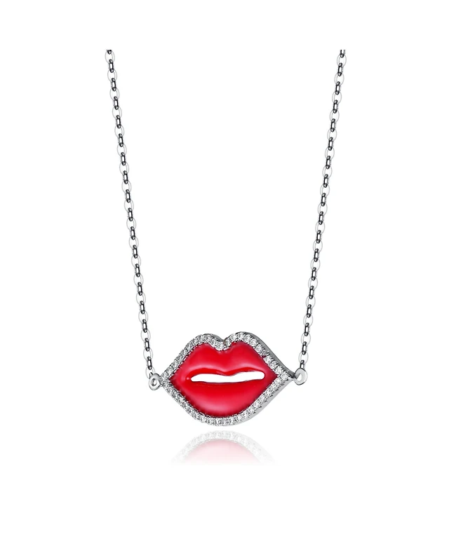 GiGiGirl White Gold Plated Cubic Zirconia Red Lips Fashion Necklace