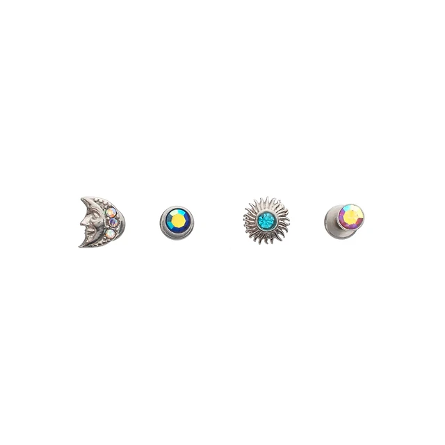 Multi-Pack Silver-Plated CZ Sun and Moon Flat Back Labret Lip Rings 4 Pack - 16 Gauge
