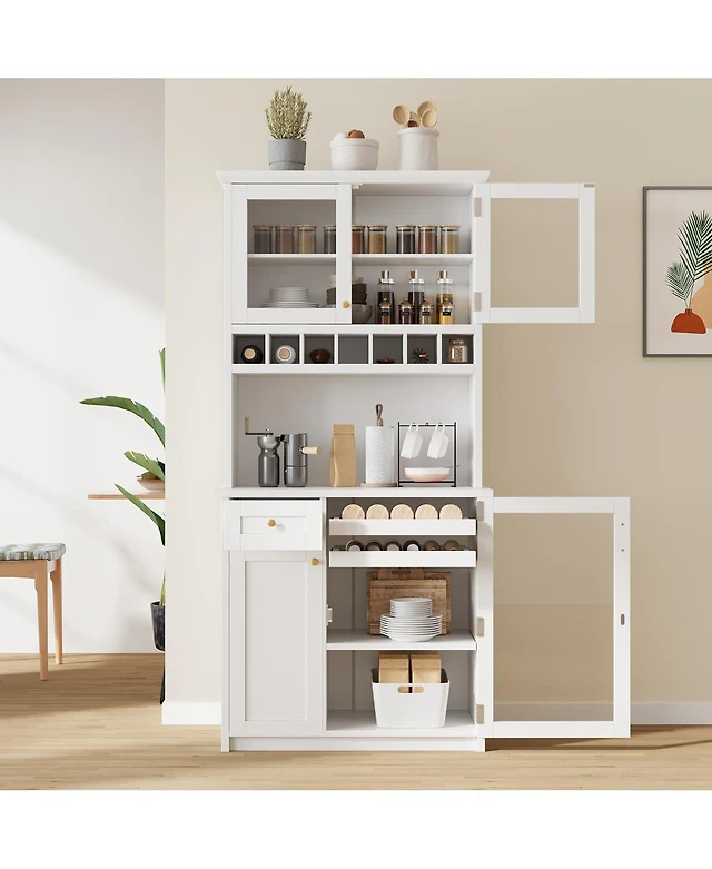 gaomon Kitchen Cabinet with Microwave Stand & Drawers, Large Storage Hutch Adjustable Shelves, Freestanding Coffee Bar Station for