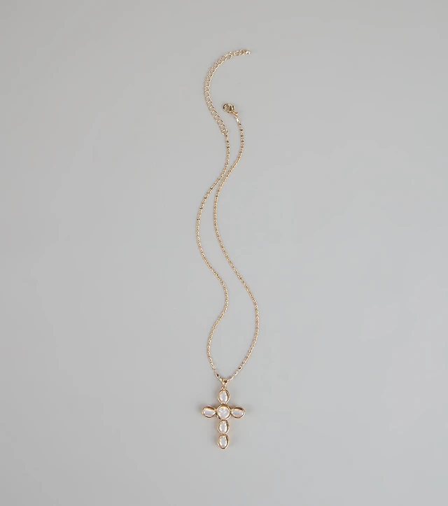 Gold Plated Rose Beaded Locket Cross Y-Necklace