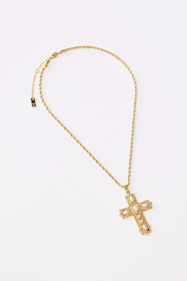 Blue Topaz Cross Pendant Necklace in Sterling Silver