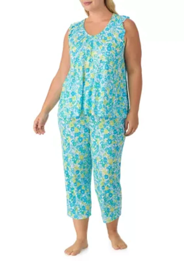 Plus Sleepwell Printed Knit Capri Pajama Pants with Temperature Regulating Technology