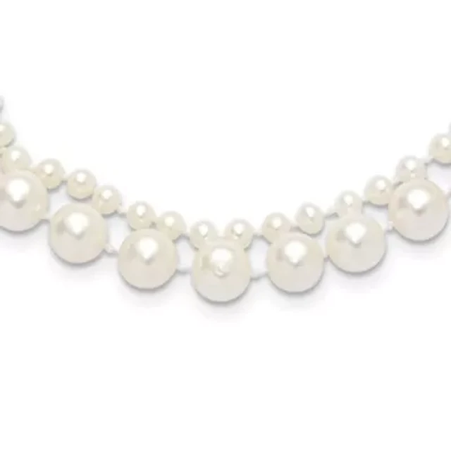 14K Yellow Gold 3-4mm and 7-8mm White Freshwater Cultured Pearl 18 Inch 2-Strand Necklace