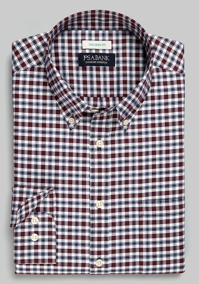 Men's Jos. A. Bank Tailored Fit Check Long Sleeve Casual Shirt at Jos. A. Bank, Burgundy