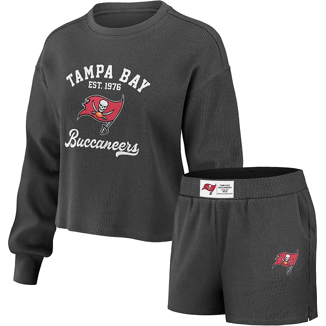 Women's WEAR by Erin Andrews Pewter Tampa Bay Buccaneers Waffle Knit Long Sleeve T-Shirt & Shorts Lounge Set