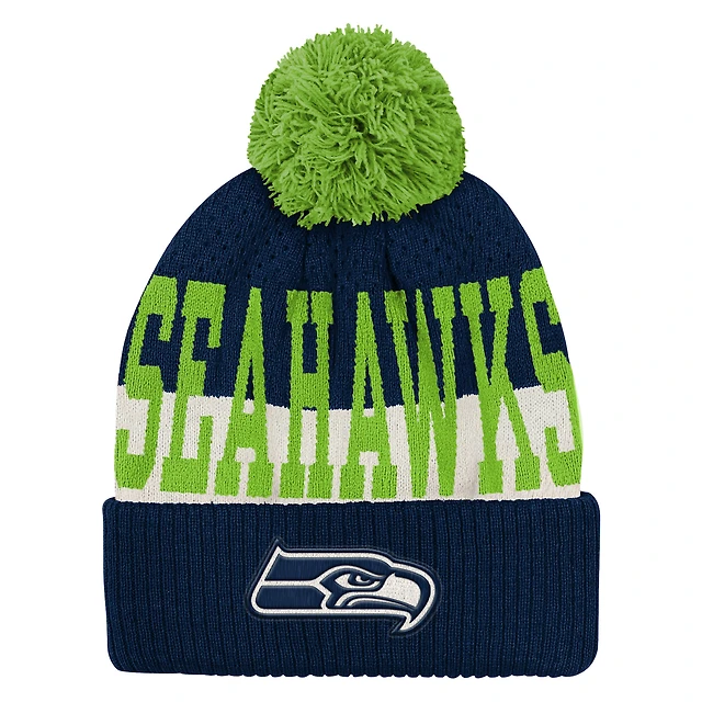 Youth Outerstuff College Navy Seattle Seahawks Modern Fan Cuffed Knit Hat with Pom