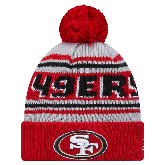 Youth New Era Scarlet San Francisco 49ers Main Cuffed Knit Hat with Pom