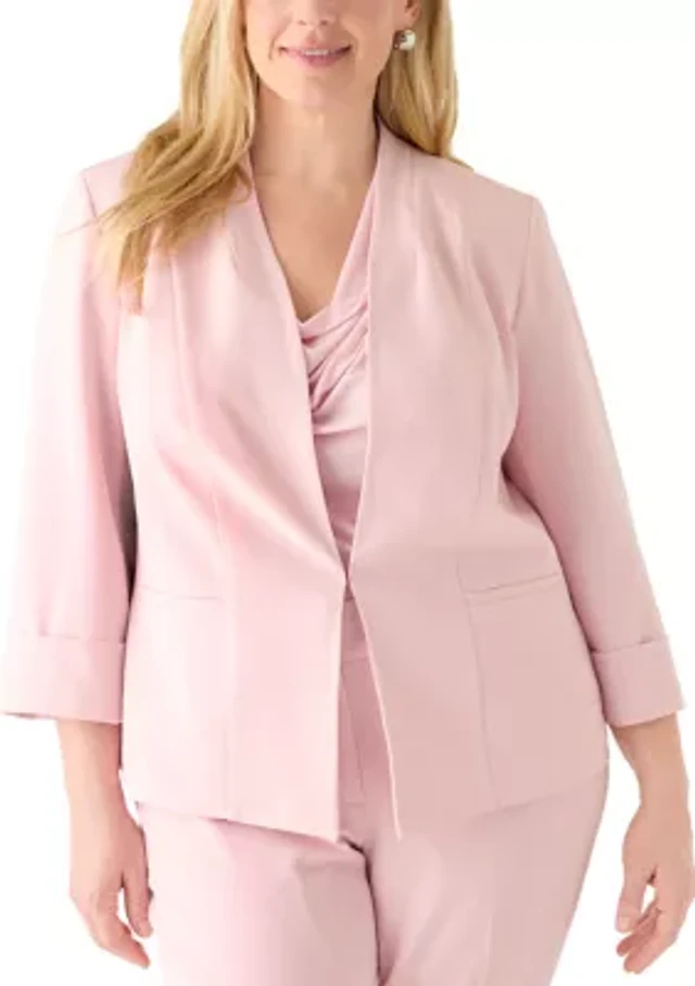 Kasper Plus Colorblocked Open-Front Cardigan