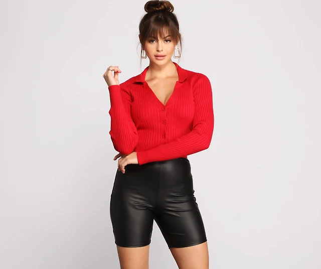 Open Stitch Polo Cardigan