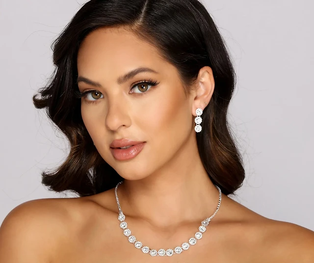 Wrap Me In Luxe Rhinestone Necklace And Duster Earrings Set